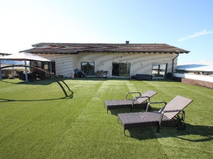 Zum Verkauf steht ein luxuriöses Penthouse mit Sauna, Whirlpool, Riesenterrasse, komplettes Inventar inkl. neuwertiger Einbauküche, neues Bad mit Whirlpool und Dampfdusche, bodentiefen Fenstern, elektrischen Rollläden und Ausbaureserve. Die Luxuswohnung verfügt über eine Fußbodenheizung, elektrische Rollläden neue Einbauküche, Fitnessraum, Büro, große Garage, Zisterne u.v.m. Die gesamte Wohnung -u. Nutzfläche beträgt Insgesamt ca. 860 m² inkl. der Ausbaureserve, der 320 m² großen Sonnenterrasse, den 2 Balkonen und der großen Garage. Eigentum nach dem Wohnungseigentumsgesetz, insgesamt drei Einheiten.