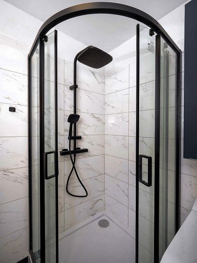 Komplett saniertes Bad mit Viertelkreisdusche mit Glasabtrennung