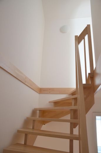 – Erdgeschoss: Eingangsbereich mit Platz für Garderobe, Gäste-WC mit Fenster, offener und heller Wohn-/Essbereich mit Südausrichtung sowie angrenzender Küche.
