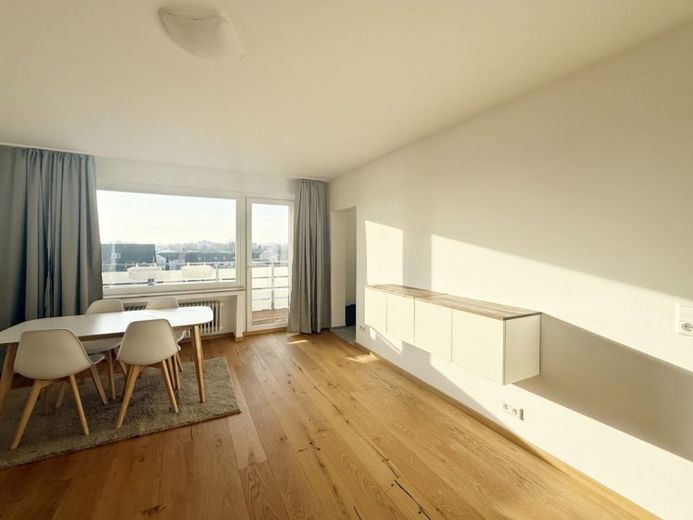 Diese gepflegte möblierte 1-Zimmer-Wohnung in der 5. Etage bietet auf ca. 40 m² ein stimmiges Zuhause mit klarer Aufteilung und einem Süd-West-Balkon als ruhigem Rückzugsort mit viel Sonnenlicht.