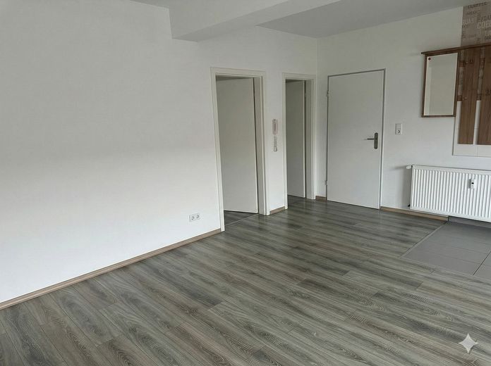 Die hellen Wohnräume sind mit einem modernen Bodenbelag in Holzoptik ausgestattet und werden durch eine integrierte Einbauküche ergänzt. Der offene, moderne Grundriss verbindet Funktionalität mit Wohnkomfort und schafft durch die neutrale Wandgestaltung sowie den Bodenbelag in zeitloser Holzoptik eine ideale Basis für individuelle Einrichtungswünsche.