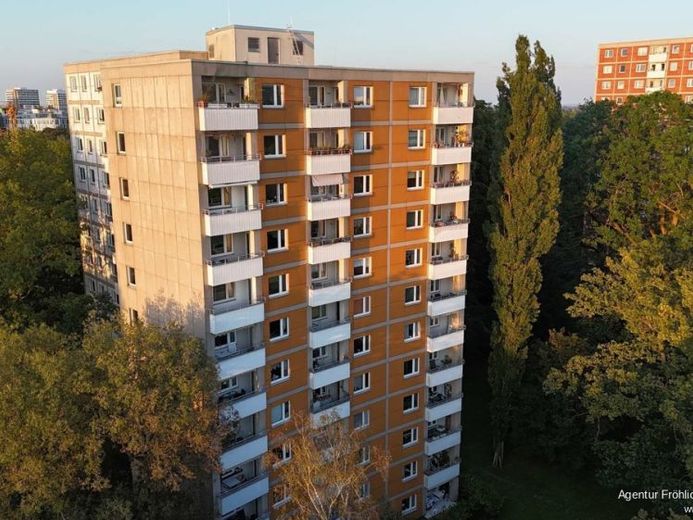 Die Wohnung verfügt über insgesamt 3 Zimmer, 1 Badezimmer, eine Küche und eine Wohnfläche von 58,89 m². Die hohe Deckenhöhe vermittelt zusätzlich viel Platz. Der Bodenbelag besteht aus Laminat und Fliesen, welcher für ein behagliches Wohnambiente sorgt. Dank des vorhandenen Aufzugs ist die Wohnung einfach zu erreichen. Ein praktischer Abstellraum im Keller sorgen für zusätzlichen Stauraum. Die Einbauschränke in Flur und Schlafzimmer werden mitverkauft und bieten viel Stauraum. Eine Loggia bietet zusätzlichen Komfort mit Blick in das parkähnliche Umfeld und bietet Schatten von den hohen Bäumen welche das Gebäude umringen.