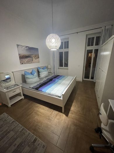 This bright, furnished and lovingly renovated historic apartment is located on the second floor of a well-maintained building in Berlin-Pankow. With approximately 50 m² of living space, 2 rooms, it offers accommodation for families, groups or business travelers. The apartment features 1 bedroom, 1 bathroom with shower, extra kitchen, wide hallways and a balcony with a beautiful view over the adjacent park and lake. High ceilings and classic historic details create a pleasant and welcoming atmosphere. Available on 1st of January 2026.