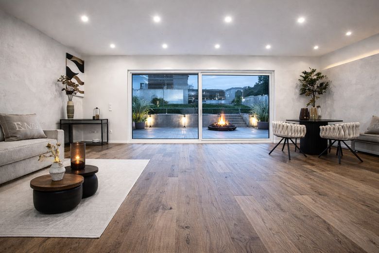 Lichtdurchflutete Räume mit großen Fensterfronten