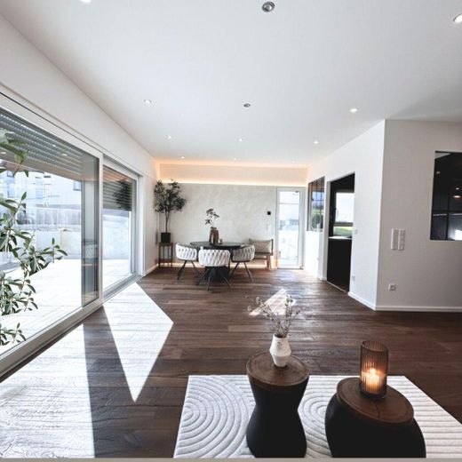Das Haus ist ökologisch und energieeffizient konzipiert – mit Wärmepumpe, wohngesunden Materialien wie Echtholzböden und Naturstein sowie großzügigen Fensterflächen für ein helles und ausgewogenes Wohnklima.