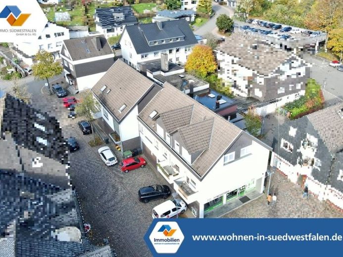 Renditestarker Gebäudekomplex auf einem ca. 1.670 m² großen Grundstück im Zentrum von Marienheide mit insgesamt 14 Wohneinheiten, 3 Gewerbeeinheiten und 4 Garagen sowie diversen Stellplätzen.