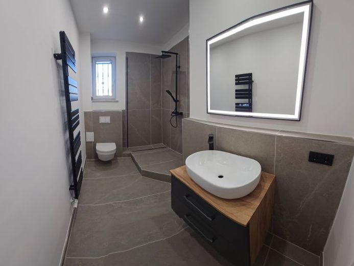 Die separate Küche verfügt über ein Fenster sowie ausreichend Platz für einen kleinen Essbereich. Das Tageslichtbad ist mit einer Dusche, WC und Waschtisch ausgestattet – gefliest, gepflegt und elegant. Ein zugeordneter Kellerraum ergänzt das Raumangebot.