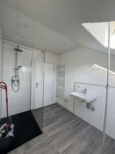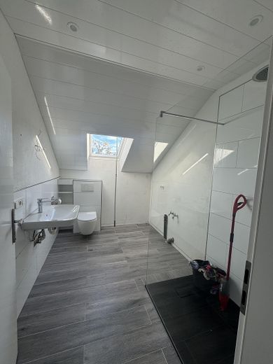 • neues Badezimmer mit Dusche (Glasabtrennung), großem Waschbecken und WC