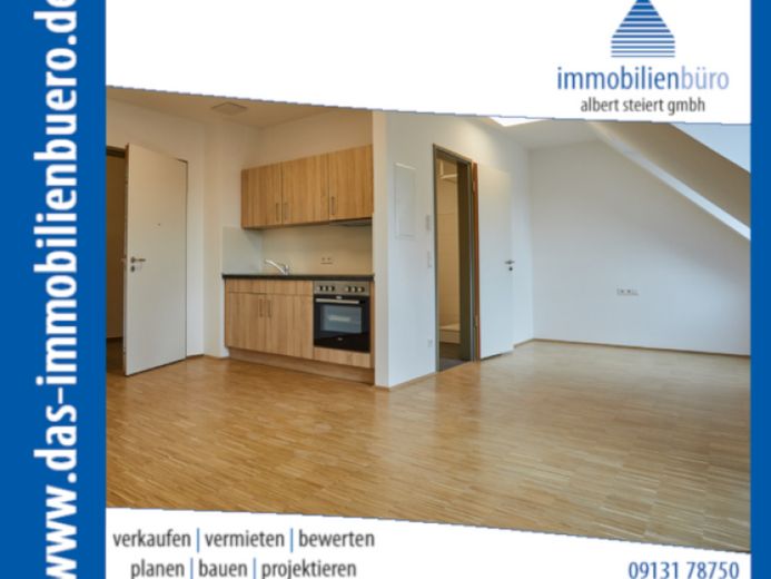 Zur Vermietung steht ab dem 01.02.2025 eine 1-Zimmer-Dachgeschoss-Wohnung mit einer Wohnfläche von ca. 39,30 m². Die Wohnung befindet sich im 3. OG eines Wohn- und Geschäftshauses mit 21 Parteien in der Erlanger Innenstadt. Das Apartment ist mit einer modernen Einbauküche und ein Duschbad mit Waschmaschinenanschluss ausgestattet. Das Haus verfügt über einen Aufzug vom Keller bis zum Dachgeschoss, ein gemeinschaftlich genutzter Fahrradraum sowie ein Waschraum.