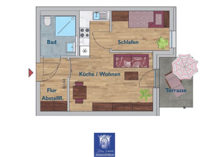 Diese gemütliche 2-Zimmerwohnung befindet sich im Erdgeschoss. Im hellen großzügigen Wohnbereich ist die offene Küche mit moderner EBK integriert. Für Entspannung und Wohlbefinden sorgt die gemütliche Terrasse. Hier können Sie gemütliche Stunden mit Freunden oder der Familie verbringen. Das Schlafzimmer verfügt über einen optimalen Zuschnitt. Das moderne Bad mit einer ebenerdiger Dusche und einem Handtuchheizkörper ist exklusiv ausgestattet. Der Anschluss für Ihre Waschmaschine sowie ein zusätzlicher Abstellraum zur Wohnung befinden sich im Treppenhaus.