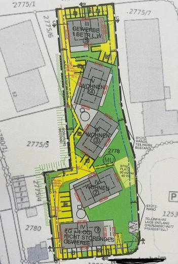 In zentraler Lage von Treuchtlingen bietet sich die Möglichkeit zur Errichtung eines modernen Wohn- und Gewerbeensembles. Das Neubauprojekt besteht aus vier Wohngebäuden mit insgesamt 46 Wohneinheiten auf rund 3.900 m² Wohnfläche sowie einem separaten Gewerbegebäude mit zwei Einheiten auf ca. 450 m² Gewerbefläche.