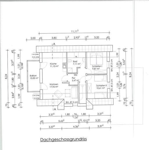 Die Wohnfläche beträgt ca. 67 m² (abzüglich aller Schrägen, inkl. Balkon) und teilt sich wie folgt auf: