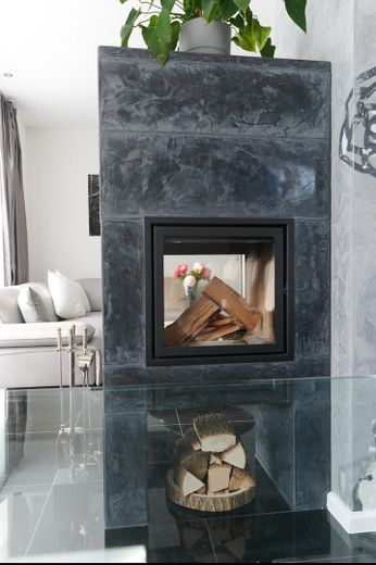 • Wohnen: Fußbodenheizung im gesamten Haus, Holzkamin (9 kW), dimmbare und deckenintegrierte LED-Beleuchtung