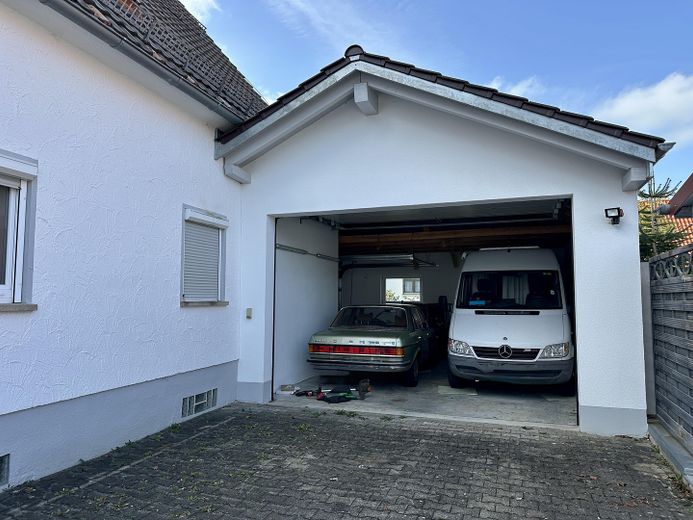 2015 wurde eine neue, 37 m² große Doppelgarage in Massivbauweise mit Satteldach und elektrischem Garagentor errichtet. Ein Highlight ist die Einfahrtshöhe mit 2,70 m, die natürliche Belichtung durch zwei großzügige Fenster sowie das zweite Garagentor in Richtung Garten.