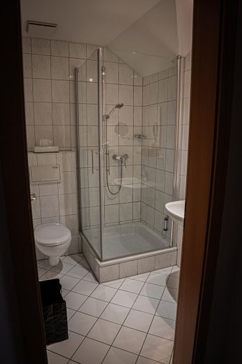 Im 1. Stock befindet sich die Pächterwohnung mit ca. 58 m² und Dachterrasse sowie 5 Gästezimmer mit Du/WC.