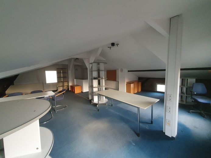 Die Flächen verteilen sich auf Erd- und Dachgeschoss und umfassen neben klassischen Büros auch Besprechungs-, Schulungs- und Nebenräume. Gemeinschaftsflächen wie Flure, WC-Anlagen sowie eine Küche sind vorhanden.