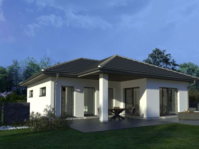Wählen Sie auch bei diesem Bungalow zwischen Walm- und Flachdach.