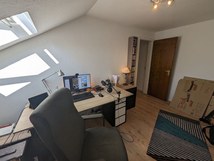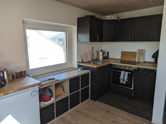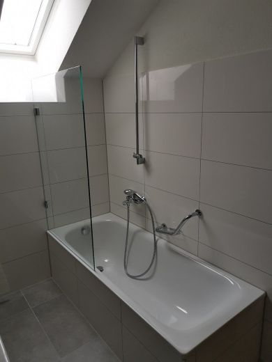 Im Flur befindet sich der Zugang zum Spitzboden über eine Zugtreppe. In der geräumigen Wohnküche können Sie gemeinsam Essen. Das moderne Bad verfügt über ein Fenster und eine Badewanne. In der Wohnung ist überall Parkett verlegt.
