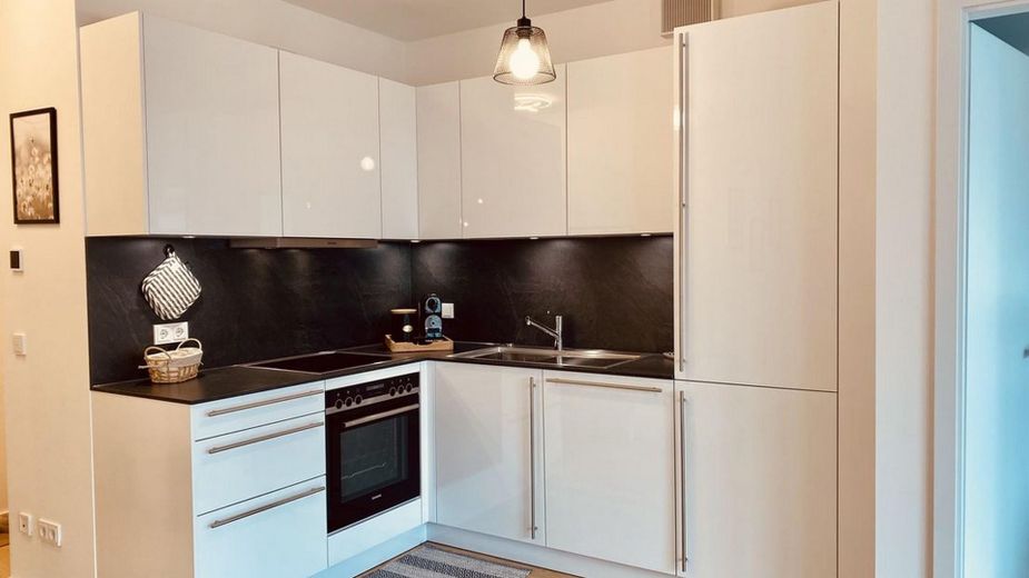 Natürlich vorhanden: eine nagelneue Einbauküche mit allen Geräten.