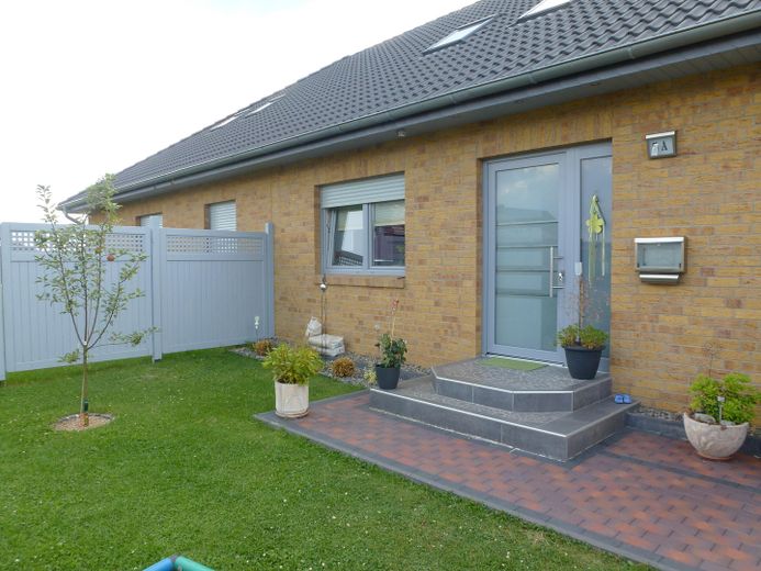 Moderne Doppelhaushälfte mit exklusiver Ausstattung wie z.B. einer Einbauküche, Designer Bad, modernen Naturstein-Bodenbelägen, begehbarer Kleiderschrank, Decken mit Einbau LED und einer Hausstaubsaugeranlage. Die Wohnfläche von 170 qm verteilt sich auf 5 Zimmer, 1 Küche, 1 Bad und 1 WC. Das Grundstück ist ca. 590 qm groß. Carport und Gartenhaus bieten genug Platz zum Unterstellen. Das hochwerte Ziegel-Verbund-Pflaster passt sich optisch sehr schön an die Klinkerwand des Hauses an.