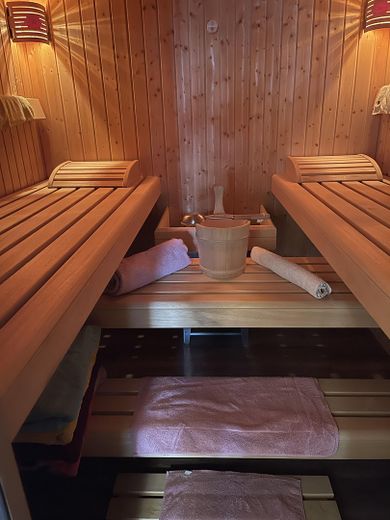 Die Fenster und Türen zum Balkon sind von uns gegen neue Kunststofffenster mit Dreifachverglasung und Aluminiumaußenschale ausgetauscht worden. Außerdem haben wir eine Sauna installiert, die auf Wunsch übernommen werden kann.