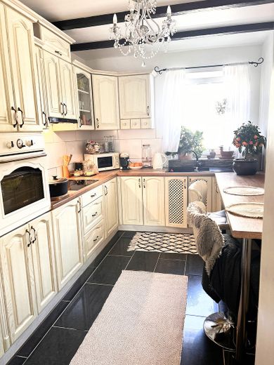 Küche mit massiven Eichenfronten, Einbaugeräten & Doppelspülbecken