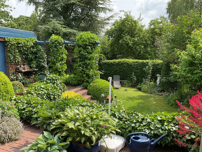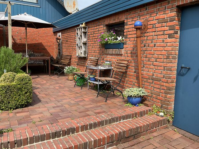 Das sonnige Grundstück mit Süd-Westausrichtung lädt dazu ein, den Tag auf der gemütlichen Terrasse ausklingen zu lassen – perfekt zum Entspannen und Genießen.
