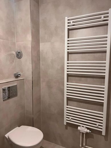 Die Wohnung ist mit einer Einbauküche inklusive Geschirrspüler ausgestattet. Das Badezimmer verfügt über eine Dusche sowie einen Waschmaschinenanschluss. Zusätzlich gehört ein trockener Kellerraum zur Wohnung. Das Gebäude ist bequem über einen Aufzug erreichbar.