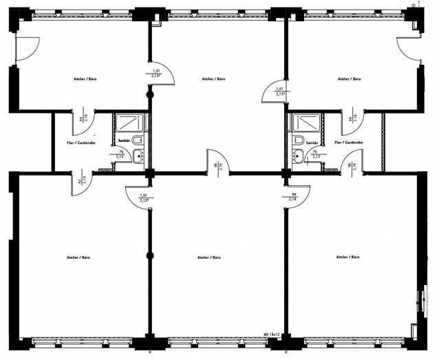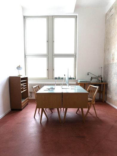 Die Einheit befindet sich in einem historischen Gewerbe-Atelierhaus und kann sowohl als Büro oder Atelier genutzt werden. Die ehemalige Villa Heike wurde 2019 kernsaniert und ist in einem sehr guten Zustand. Es sind verschiedene Einheiten einzeln oder zusammen vermietbar. Alle Einheiten haben moderne Duschbäden. Die Türen und Fenster sind im Original erhalten, der Fussboden ist ein restaurierter, dunkelroter Calziumsulfatestrich. Die übrigen Einheiten in dem Haus sind an Künstler oder an Einzelfirmen und Freischaffende aus der Kreativszene vermietet.
