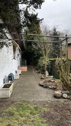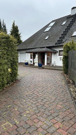 Es steht auf einem 737m² großen Grundstück mit separater Auffahrt, dazu mehreren Parkplätzen und einer Terrasse direkt vor der Haustür. Der pflegeleichte Garten hinterm Haus mit einer zweiten Terrasse, bietet Platz für Freizeit, Spiel und Entspannung. Das Haus hat eine konventionelle Bauweise. Großzügige Wohn- und Schlafräume mit großen