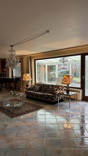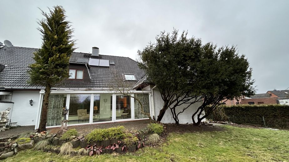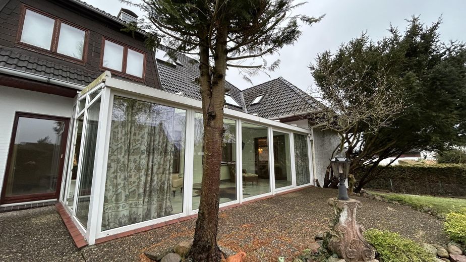 Es ist voll unterkellert, verfügt über eine innenliegende geräumige Garage, einen Wintergarten, der über das Wohnzimmer begehbar ist und einem verglasten Haupteingangsbereich, sowie einem voll ausgebauten Dachgeschoss.