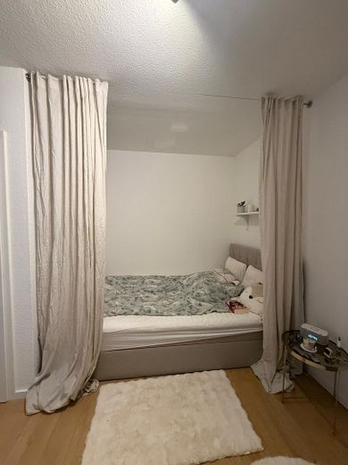 Das Apartment ist 24qm groß und aufgeteilt in einen Eingangsbereich, einen Hauptraum mit bodentiefem Fenster, französischem Balkon und Blick ins Grüne, einer abgetrennten Küche mit Küchenzeile sowie einem gefliesten Badezimmer mit Waschbecken, WC und Duschkabine. Die Wohnung befindet sich in einem frisch renovierten Zustand. Es wurde neu tapeziert, alle Zimmertüren, alle Steckdosen und Schalter wurden erneuert und die Dusche sowie der Boden im Bad wurden neu gefliest. Die Küchenzeile ist ebenfalls neu.