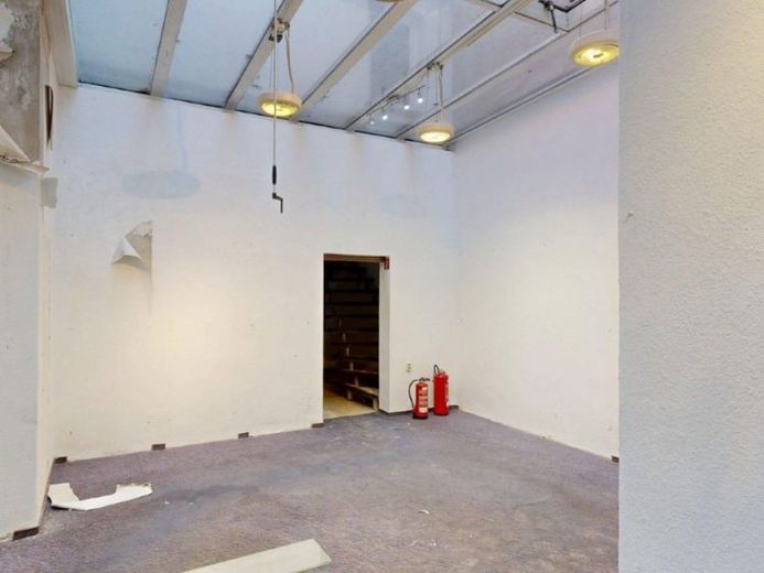 Die Immobilie bietet eine zweigeteilte Verkaufsfläche, ergänzt durch zwei praktische Lagerräume sowie eine großzügige Schaufensterfront, die eine ausgezeichnete Sichtbarkeit garantiert. Der hintere Verkaufsbereich ist mit einem Glasdach ausgestattet, das den Raum mit viel Tageslicht versorgt und für eine angenehme, offene Atmosphäre sorgt.