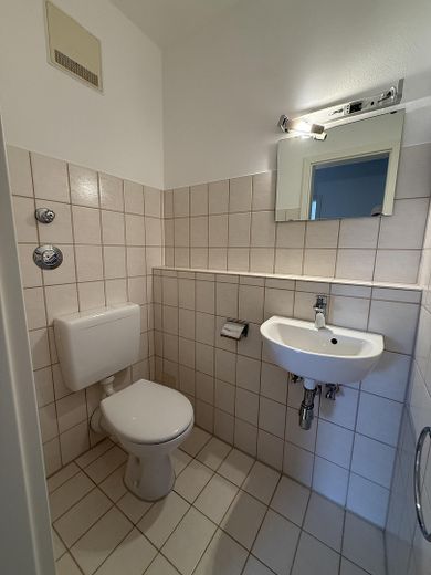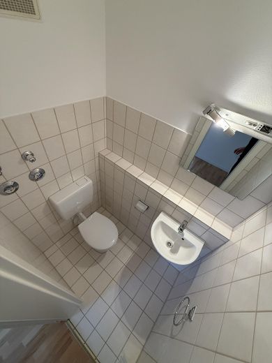 Ergänzt wird die Wohnung durch ein separates WC, eine praktische Abstellkammer sowie einem ruhigen Schlafzimmer, das auf der von der Straße abgewandten Seite des Hauses.