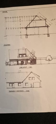 Für SELBSTÄNDIGE, z.B. unten Wohnen, oben BÜRO mit 3 Zimmern, Bad, Küchenzeile und 100qm über zwei Garagen (die an der Straßenseite befahrbar, die Zweite im hinteren Gebäudeteil) als Lagerraum etc..