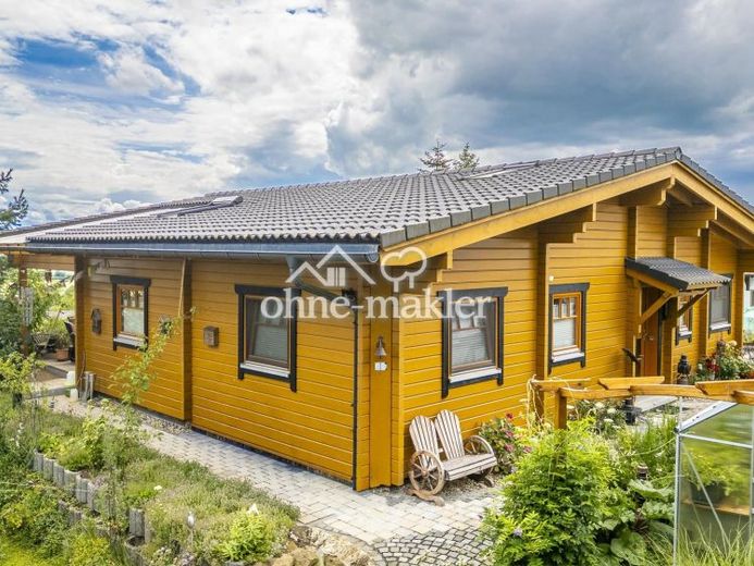 Dieses außergewöhnliche Einfamilienhaus in Steinach-Münster verbindet ökologische Massivholzbauweise, modernste Dämmtechnik und ein unvergleichlich warmes Wohngefühl. Gebaut aus massiven Blockbohlen aus finnischer Polarkiefer von einem anerkannt innovativen Markenunternehmen (Baujahr 2016, KfW-55) bietet es ein natürlich reguliertes, wohngesundes Raumklima – ganz ohne Zwangslüftung – dank diffusionsoffener Konstruktion, Zellulosedämmung und patentiertem Dach/Wandsystem mit 29 cm Aufdachdämmung (wärmebrückenfrei).