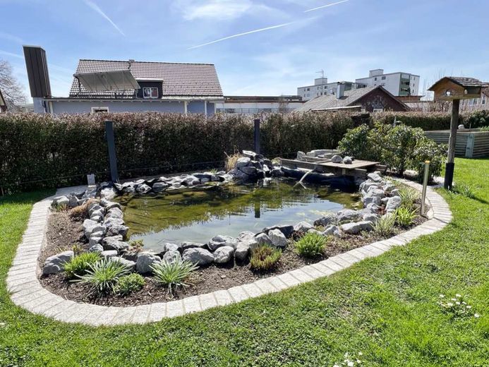 ganztägig besonnten Aussenbereich mit Teich und