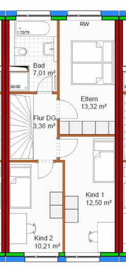 • Obergeschoss: Drei helle Zimmer mit luftiger Deckenhöhe durch das Pultdach sowie ein modernes Tageslichtbad.