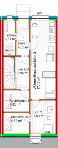 • Gesunde Raumluft: Eine dezentrale Lüftungsanlage mit Wärmerückgewinnung in jedem Raum sorgt permanent für frische Luft und ein optimales Raumklima.