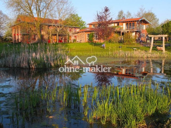 Er liegt am Rande des Dorfes Neuhorst in unmittelbarer Nähe eines Kranichbrutgebietes. Das Grundstück hat eine Gesamtfläche von 15.000 qm.