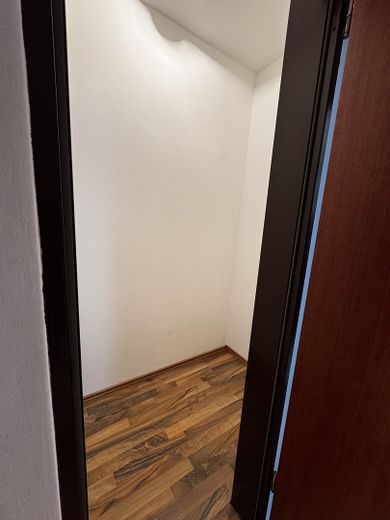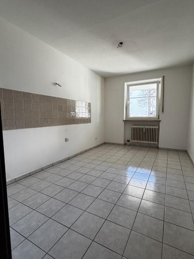 Der Küchenraum ist leer, alle Anschlüsse sind vorhanden und bieten dem Mieter die Möglichkeit, eine Küche nach eigenen Vorstellungen einzubauen.