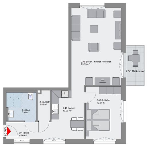 2 Zimmer | Küche | Bad | Balkon