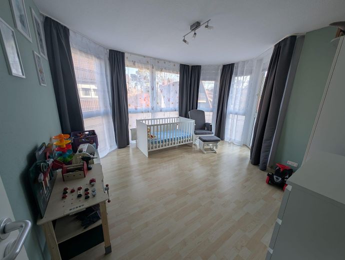 Das Kinderzimmer mit bodentiefen Glas-Erkerfenster und das Büro mit perfektem Tageslicht durch bodentiefe Fenster bieten besonderen Flair und Funktionalität.