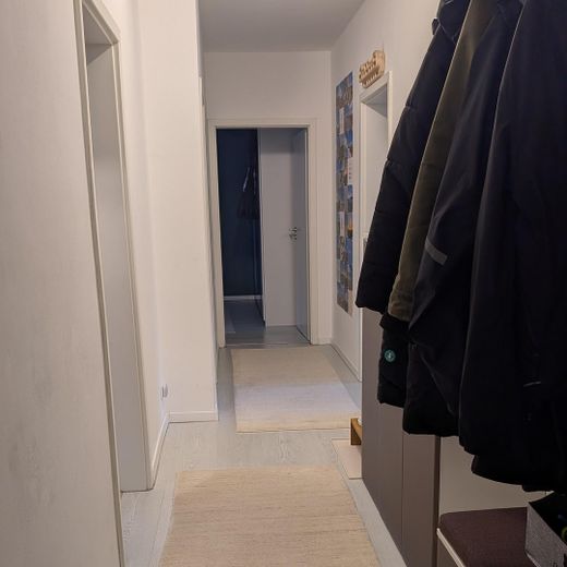 In den Wohnräumen und im Flur ist Laminat verlegt, die Küche ist mit Vinylboden ausgestattet, das Badezimmer mit Fliesen in Holzoptik. Die Fenster sind dreifachverglast, auf der Straßenseite mit zusätzlichem Schallschutz.