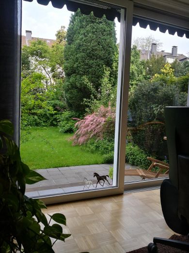 Die Wohnung liegt in einer ruhigen Seitenstraße der Düppelstraße und ist von viel Grün umgeben.