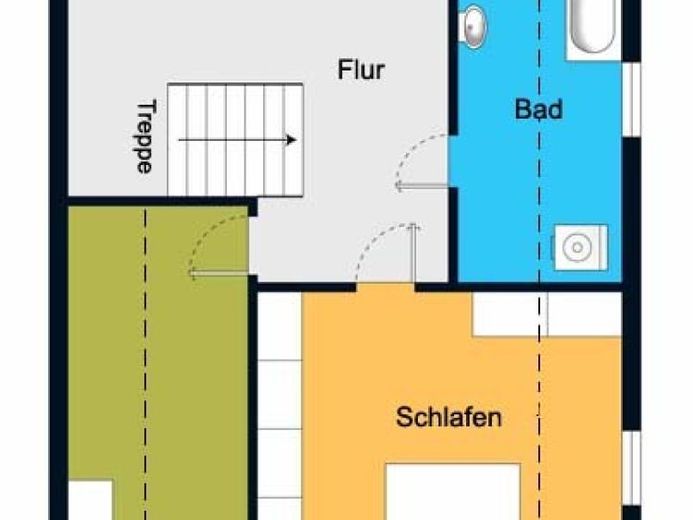 Direkt vom Wohnungseingang aus gelangen Sie über die Treppe in den Flur auf der oberen Wohnebene. Hier finden Sie das optimal geschnittene Wohnzimmer mit integrierter Küche, als auch das gemütliche Schlafzimmer. Das Tageslichtbad ist mit einer Wanne, dem Anschluss für Ihre Waschmaschine und der Therme ausgestattet. Auf dem großzügigen Dachboden finden Sie ausreichend Staufläche, dieser ist direkt von der Wohnung aus begehbar. In allen Wohnräumen liegt Laminatboden. Flur und Küche verfügen über PVC-Belag.
