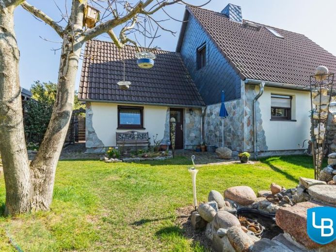 Auf dem großzügigen Grundstück von 828 m² finden Sie eine Außenanlage, die mit vielen liebevollen Details gestaltet wurde. Feldsteine und verspielte Elemente schaffen ein idyllisches Ambiente, das zu entspannten Stunden im Freien einlädt.
