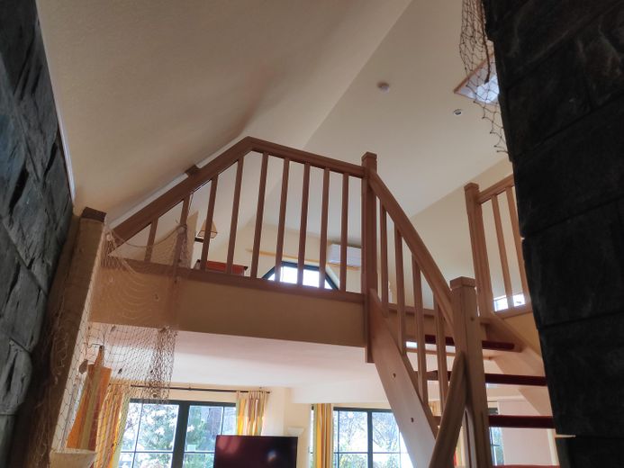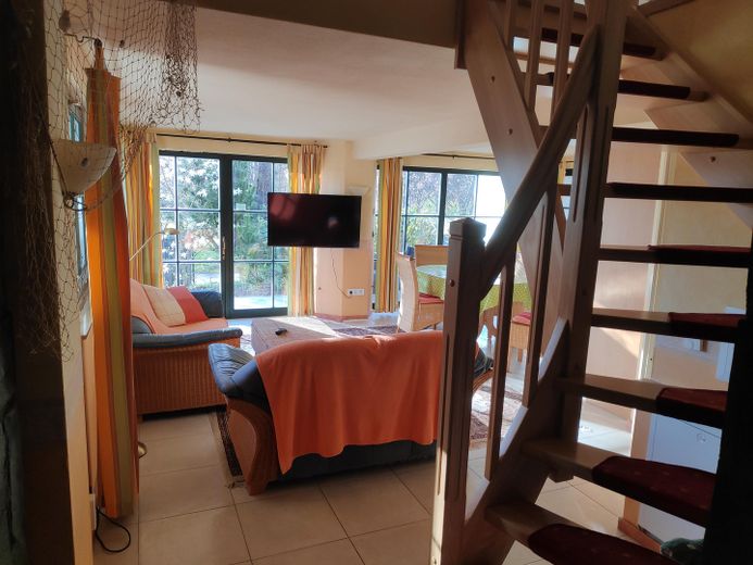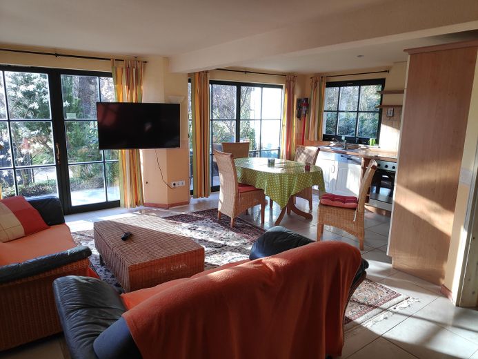 Das Haus verfügt über 2 Schlafzimmer, 1 Bad, 1 Wohnbereich mit Küche und Fußbodenheizung, Terrasse im Erdgeschoss, einen weiteren Wohnschlafbereich mit Toilette, Hochterrasse und unverbautem Blick in die Natur. Weiterhin steht ein separater Carport mit 60qm sowie weitere Parkplätze am Haus zur Verfügung. Das Haus ist teilunterkellert. Sollten Sie Interesse an der Vermietung als Ferienhaus haben, kann das Haus ohne größeren Aufwand in 2 separate Wohnungen umgebaut werden. DSL-Anschluss verfügbar. Flüssiggasheizung mit neuer Brennwerttherme ( 2025) und WLAN Steuerung mit Eigentumstank, sehr preiswert. Klimanlage im ganzen Haus. Das Haus wird komplett möbliert verkauft.