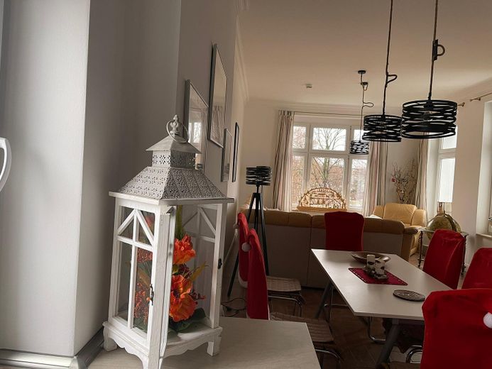 This bright, furnished and lovingly renovated historic apartment is located on the second floor of a well-maintained building in Berlin-Pankow. With approximately 77 m² of living space and a total of three rooms, it offers generous accommodation for families, groups or business travelers. The apartment features two bedrooms, a large bathroom with bathtub, shower and toilet. Further highlights include a spacious eat-in kitchen with a beautiful view over the adjacent park and lake and wide hallways. High ceilings and classic historic details create a pleasant and welcoming atmosphere. Available on 1st of January 2026.