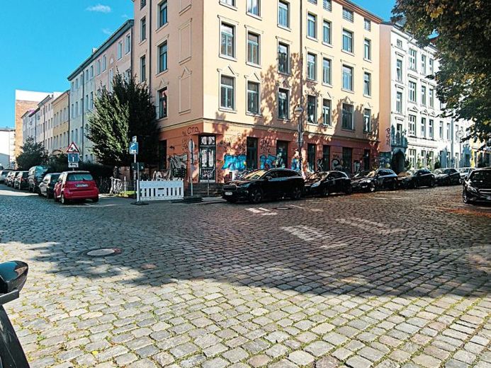 wurden. Die Wohnung verfügt über ein Wohnzimmer, zwei Schlafzimmer, ein gefliestes Wannenbad sowie eine Küche mit EBK und Zutritt zum hofseitigen Balkon sowie einen kleinen Abstellraum im Flur. Der Fußboden ist mit Holzdielen verlegt. Zu der Wohnung gehört ebenfalls ein Kellerraum im Haus. Beheizung mittels Gaszentralheizung.